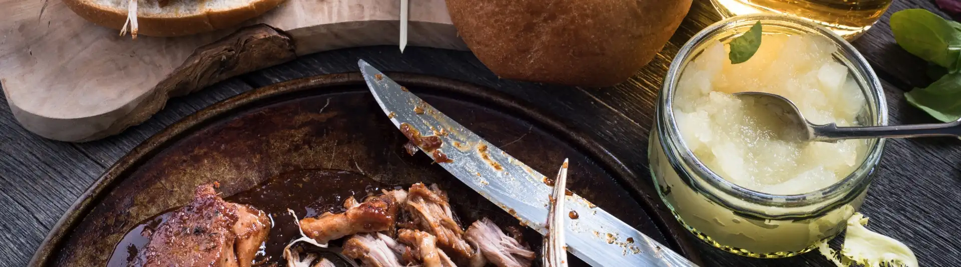 A succulent hog roast within a soft or crusty bread roll covered in applesauce would be a delicious treat for your guests, leaving them talking about the food for days!